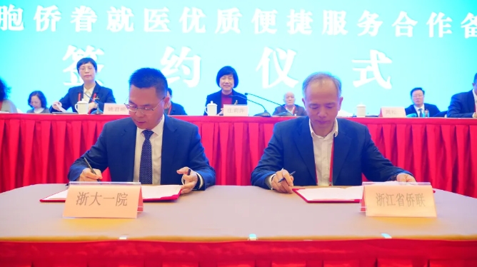 會議期間,省僑聯黨組成員、副主席周松一,浙大一院常務副書記、副院長邵浙新分別代表雙方單位簽訂了《提升僑胞僑眷就醫優質服務合作備忘錄》。