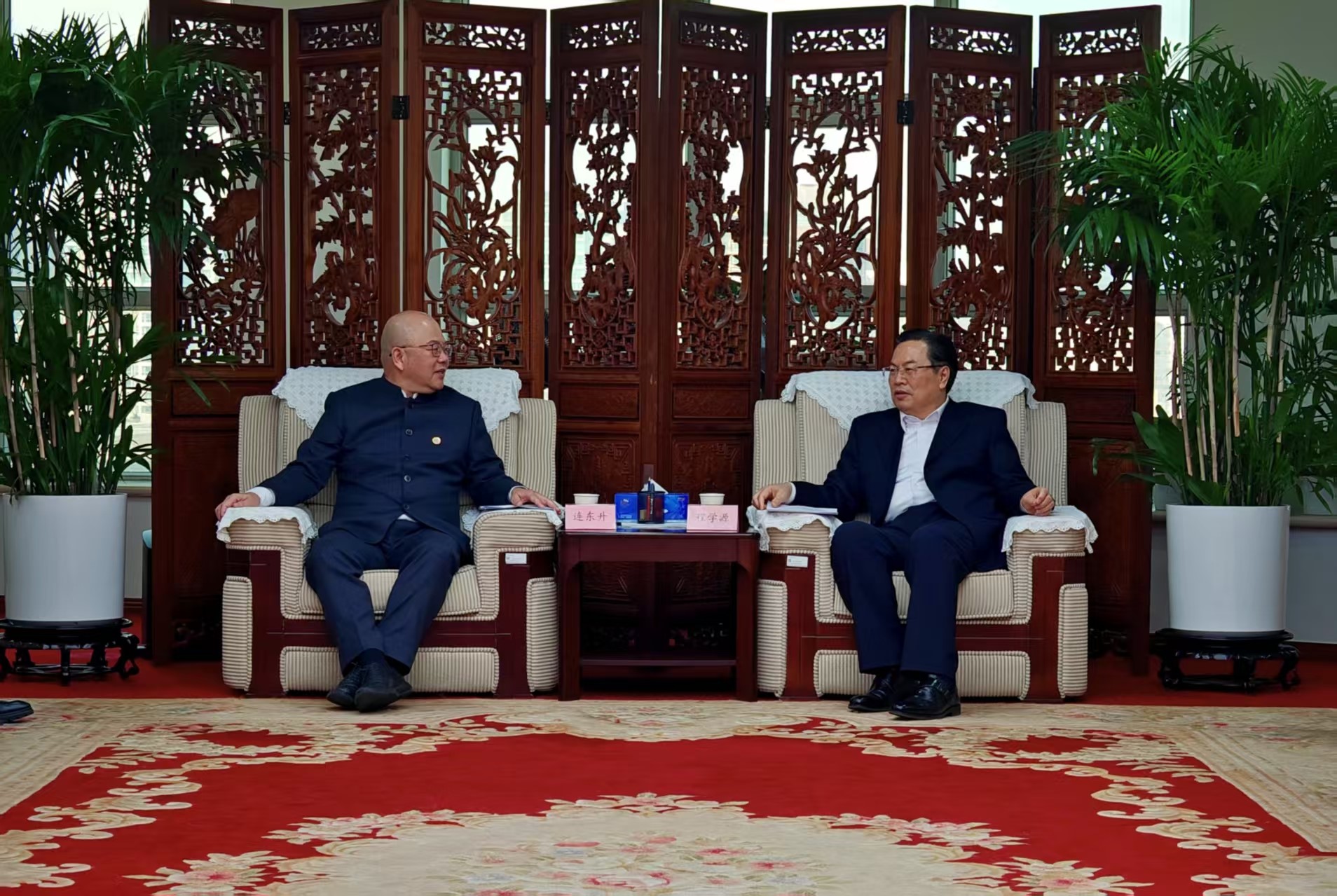 3月18日下午,中國僑聯副主席程學源在北京會見以連東升為團長的福連四海僑胞服務中心訪問團一行。程學源向訪問團介紹了新時代中國取得的偉大成就,歡迎僑胞們?;貋碜咦呖纯?,感受祖(籍)國發展的蓬勃生機,做中外民心相通的友誼使者。