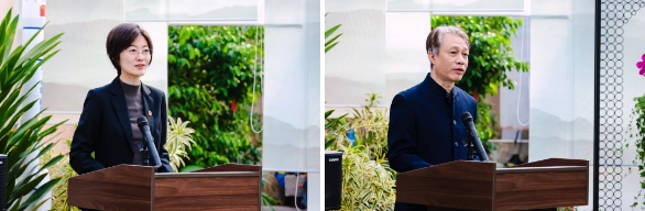 楊伯勛和楊偉竹共同為“僑心書苑”揭牌
