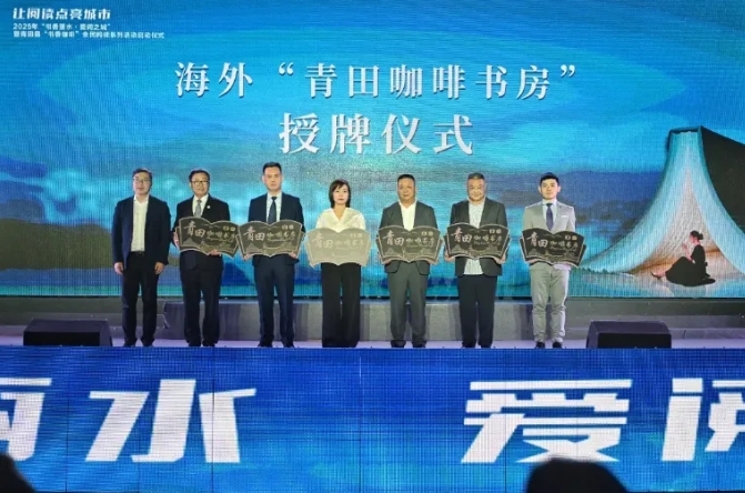 4月28日晚,2025年“書香麗水?愛閱之城”暨青田縣“書香咖啡”全民閱讀系列活動啟動儀式在甌南街道防洪堤圓形廣場盛大舉行,鏗鏘雄壯的誦音、優雅絢爛的歌舞、動人心弦的寄語在激發閱讀熱情的同時,將活動氛圍一次次推向高潮。其中,兩場別具意義的儀式——海外“青田咖啡書房”授牌與“送書出?!辟涢唭x式,讓漂洋過海的“中國好書”成為世界了解中華文化的窗口與橋梁。