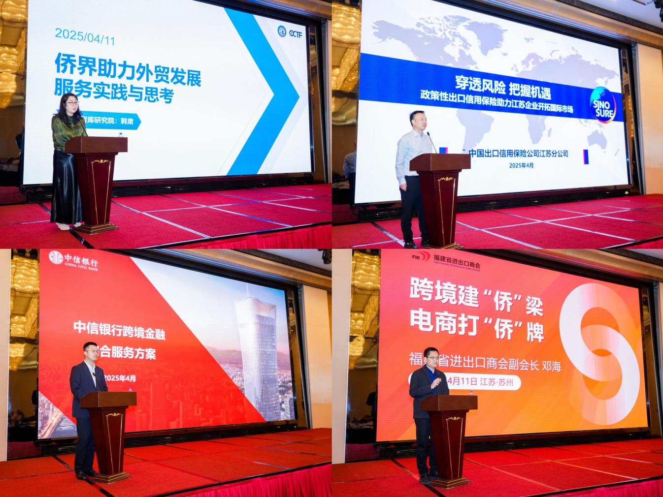 活動期間,還針對外向型僑資企業的痛點堵點,提供專業化的政策指導和全場景的案例輔導,分別邀請江蘇省稅務局作江蘇省出口退稅政策解讀,中信集團協同委江蘇區域分會宣介中信助僑綜合服務方案中有關跨境金融服務體系情況,中國信保江蘇分公司介紹了跨境保險專屬服務,深圳市僑商智庫研究院分享了以海外展會、海外倉平臺服務僑界跨境電商發展的成功案例,福建省進出口商會也介紹了中國進出口跨境電商聯盟有關情況。與會代表紛紛表示,活動為企業和產品出海搭建了大平臺,帶來了大禮包,更讓他們看到了海外的僑界大網絡,他們有更強的信心應對當前國際經貿形勢,也有更足的底氣出海拓市場。