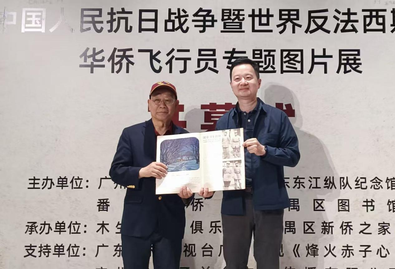 5月12日,“華僑雄鷹 抗日飛虎”——番禺僑界紀念中國人民抗日戰爭暨世界反法西斯戰爭勝利80周年華僑飛行員專題圖片展在廣州市番禺圖書館舉行,中國華僑歷史博物館副館長(主持工作)寧一出席開幕式,代表僑博接受美國飛虎隊研究院院長、華人收藏家陳燦培捐贈的70余件/套海外華僑支持祖國抗戰的實物資料,并向陳燦培頒發2024年中國僑聯、國家文物局“共和國印記”主題活動見證物入選榮譽證書。
