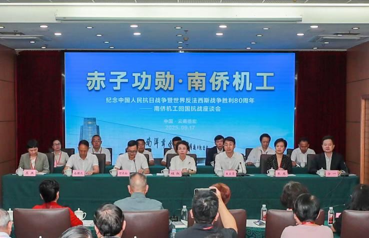 紀念中國人民抗日戰爭暨世界反法西斯戰爭勝利80周年——南僑機工回國抗戰座談會舉行,南僑機工學院同日授牌成立。中國僑聯副主席程紅出席并講話、中共德宏州委書記王云霏出席并致辭,云南省僑聯黨組書記、主席何長松主持座談會,部分南僑機工后代、僑史專家在座談會上發言。