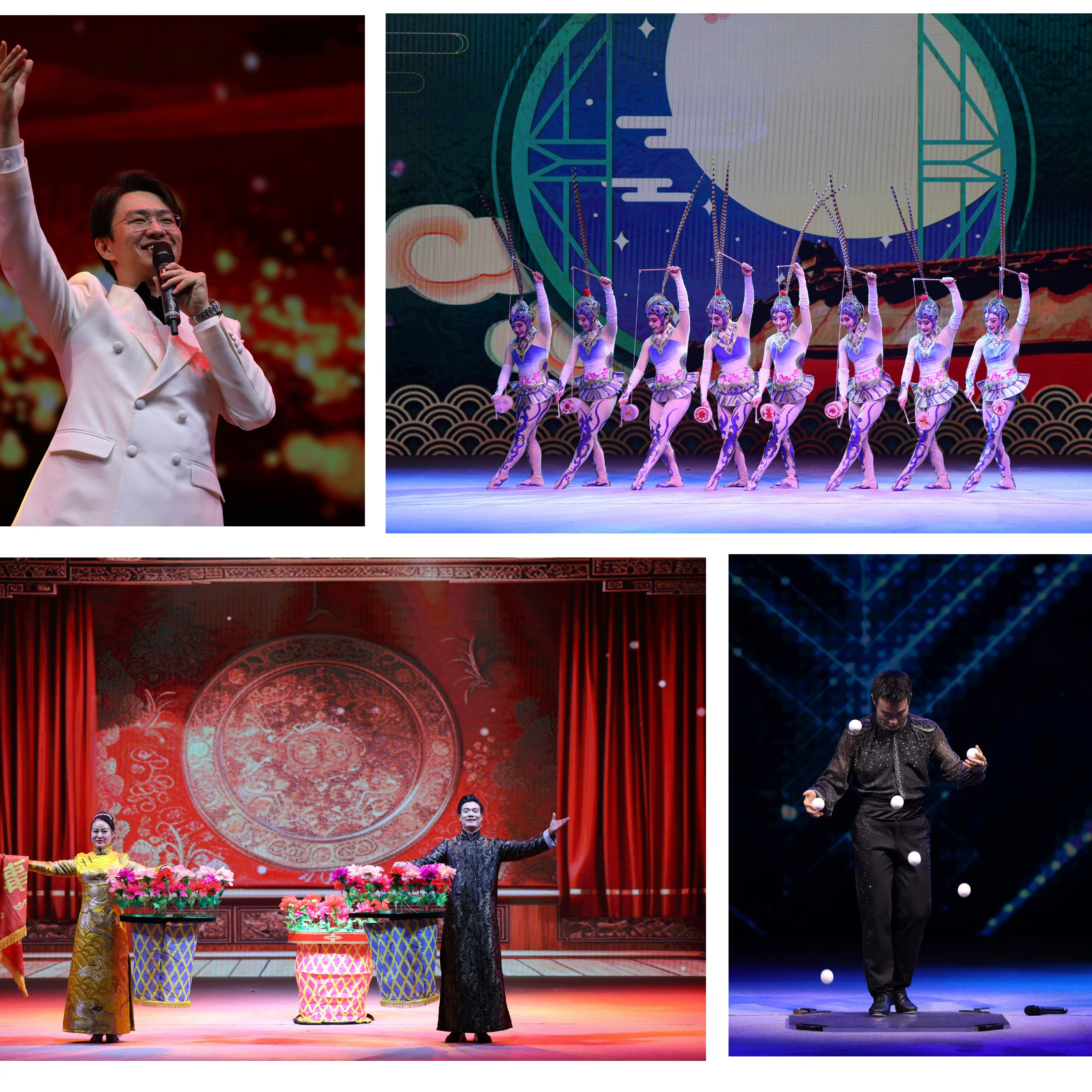 河北梆子《穆桂英掛帥》選段折射戲曲藝術魅力,葫蘆絲獨奏《歡樂的潑水節》呈現民族文化風采,節目《錦繡華章》、雜技《邀月弄影—肩上芭蕾》等具有東方雅韻,給現場觀眾留下深刻印象。